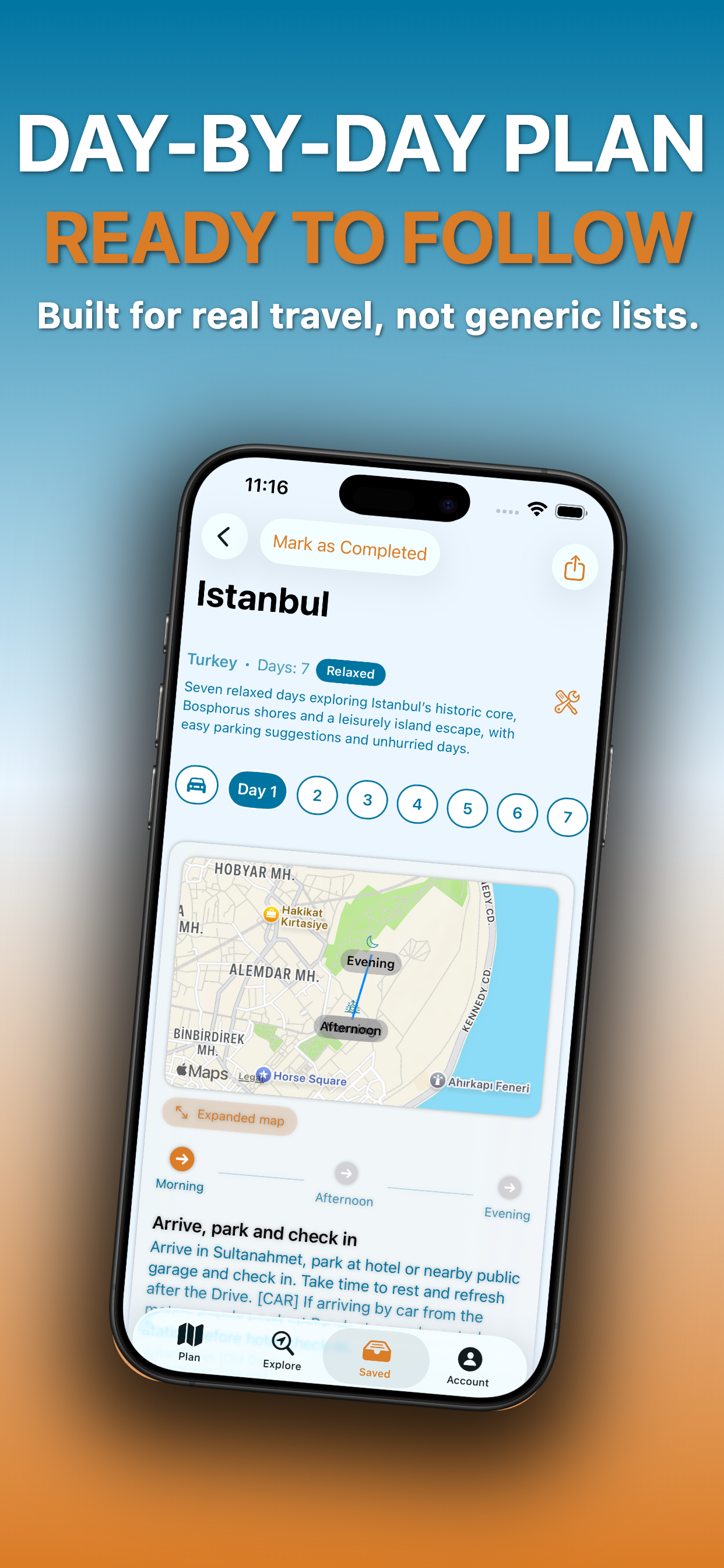 The iOS app adds more detail, a better planning flow, and extra tools that make the experience more useful for real trips.